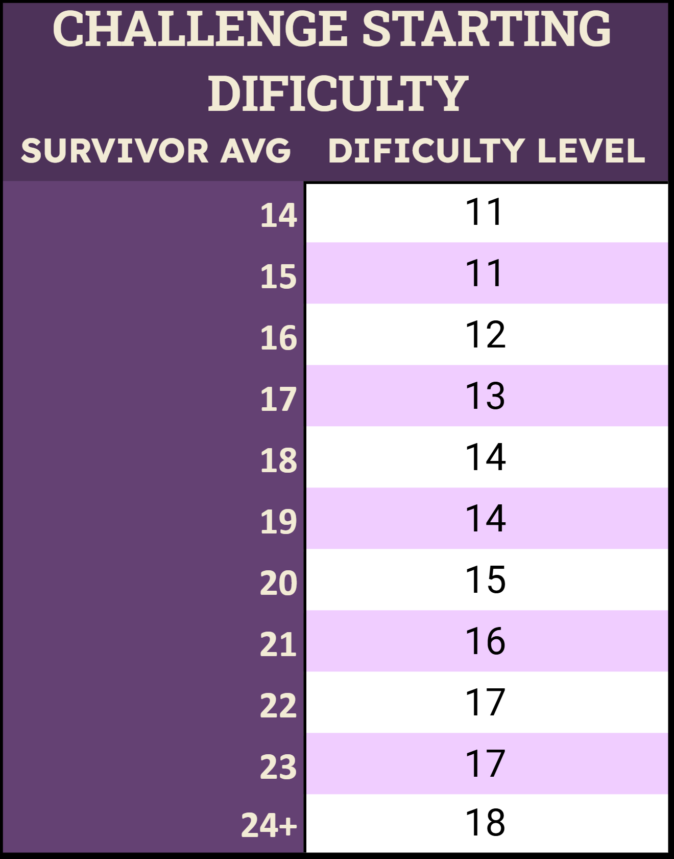 The starting level of the challenge is defined by the average level of your 3 highest survivors (see table below). When the average level of your 3 highest survivors becomes greater than 24, the difficulty level stops increasing. Note that since the challenge score is based on the rounds' difficulty, the maximum amount of stars is lower unless you have at least lvl 24 heroes.
