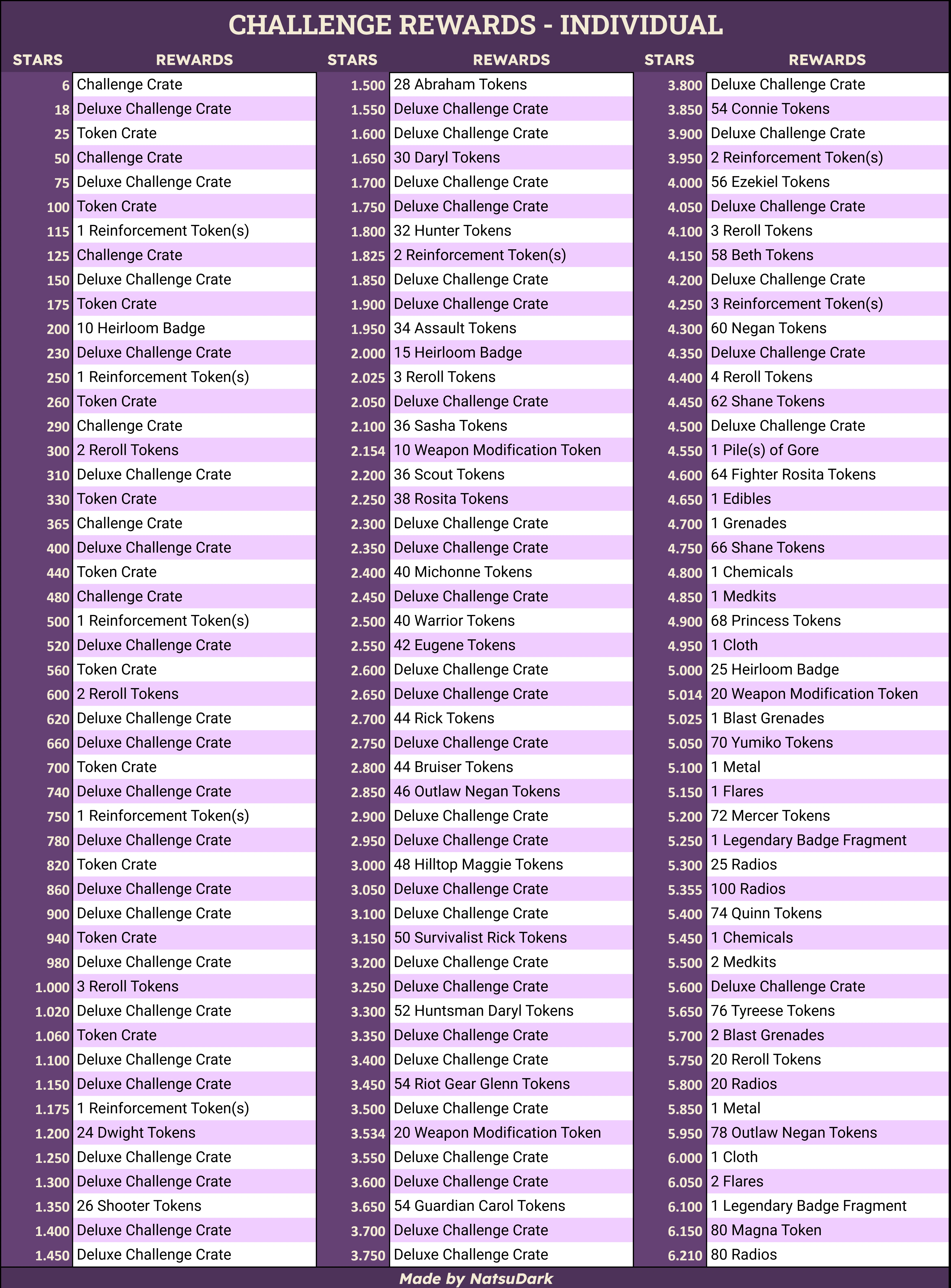There are 2 types of rewards in Challenge Mode: Individual rewards and Guild rewards. Individual rewards are acquired when the player reaches a certain number of stars. Guild Rewards are acquired when the guild reaches a certain number of stars, and that rewards are distributed by all the members of the guild.