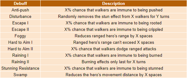 Since update 6.6, a new set of rounds was added to the end of the challenge. These 10 rounds (rounds 81-90) will be a repeat of the rounds 71-80 but with four added Plights. These are debuffs that make the mission harder, either by giving walkers a chance to resist various status effects, or which affect the survivors, for example by reducing their movement range. The possible plights are shown below: