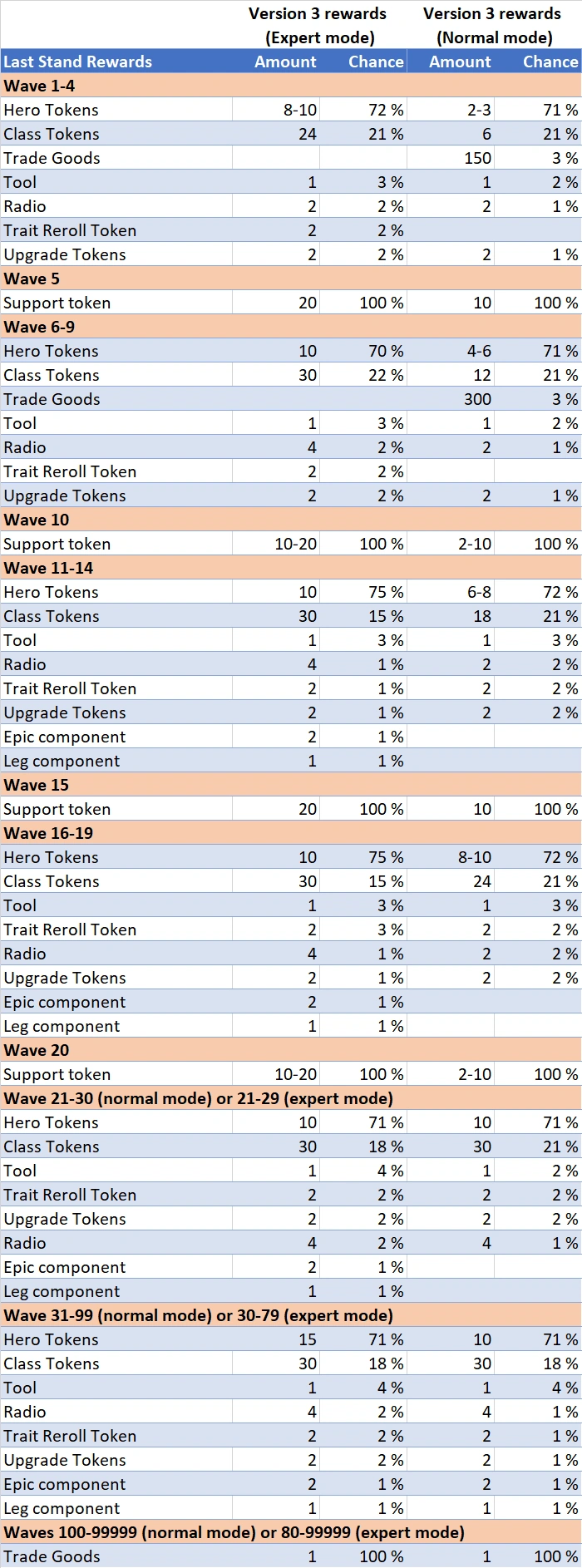 Overall, rewards include Hero, Survivor, and Support tokens; Reroll and Reinforcement tokens, Radios, Tools, Badge components and fragments. Support tokens can not be obtained in any other game mode.